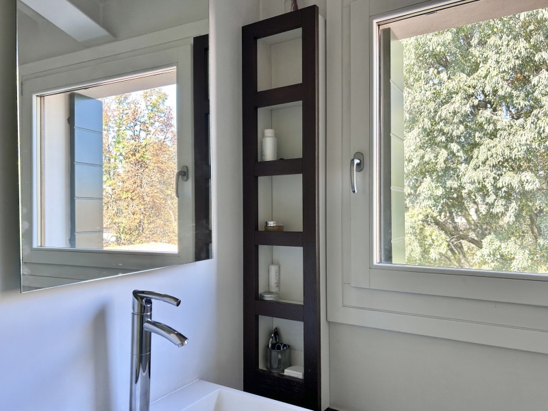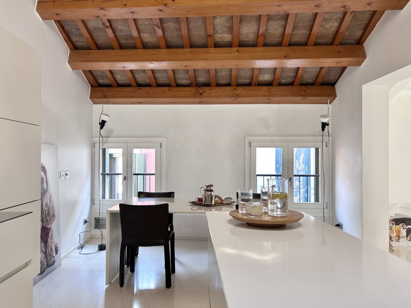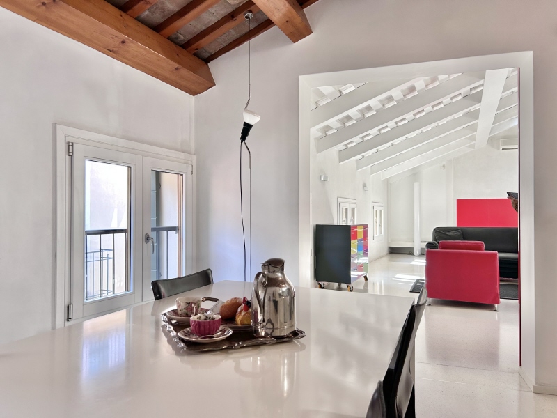 La purezza delle linee contemporanee, il candore del bianco materico e la raffinatezza di finiture pregiate dell’appartamento, ristrutturato completamente nel 2005, incontrano il fascino senza tempo dell’antico palazzo nobiliare che lo ospita. Un perfetto equilibrio tra eleganza storica e funzionalità moderna.