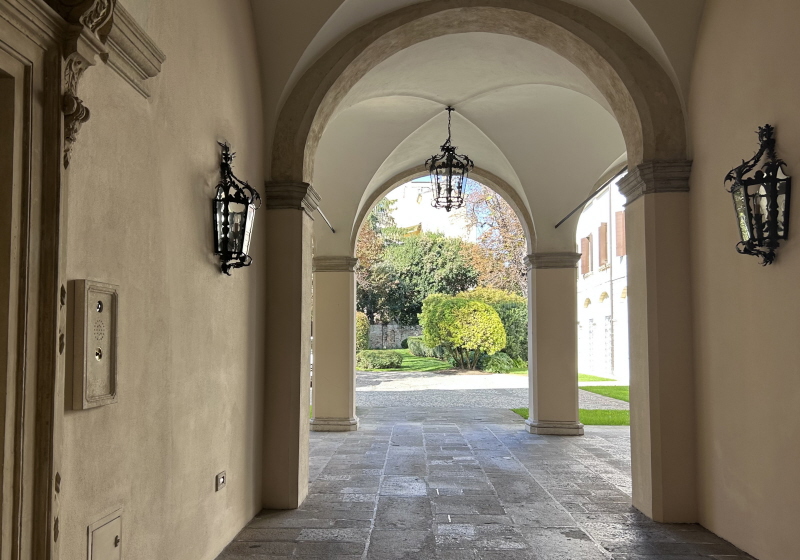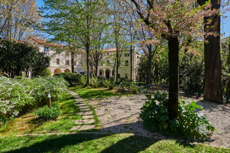 L’intreccio di epoche fa da cornice al giardino interno, un’oasi verde dal fascino bucolico.