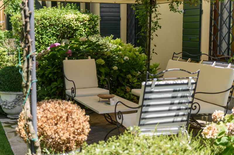 La proprietà, dotata di ascensore interno, si apre su un giardino privato e dispone di garage per più auto e area attrezzi.
