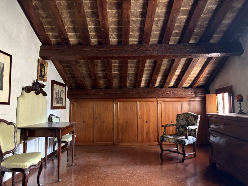 Antiche travi in legno con motivi decorativi originali, soffitti molto alti e una luminosità naturale che valorizza ogni ambiente: questo palazzetto indipendente, disposto su tre livelli, conserva intatta l’atmosfera raffinata delle epoche passate pur offrendo tutti i comfort moderni.